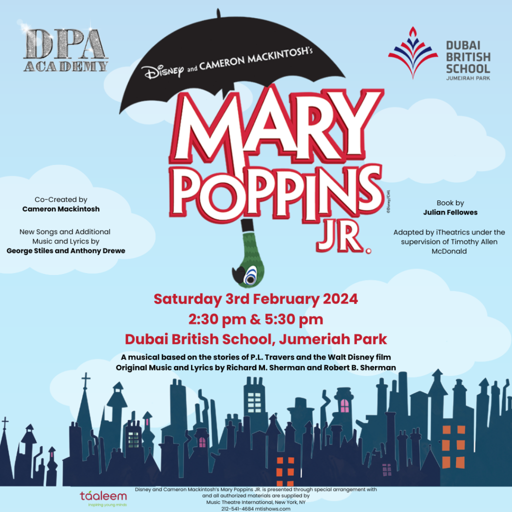 We are delighted to share our 2024 DPA Musical of Mary Poppins Jr. Date – Saturday 3rd February 2024 Location – Dubai British School, Jumeriah Park Show Timings – 2:30 pm & 5:30 pm Ticket from 80 DHS Tickets are to be bought in cash from the DPA office. No seating can be secured without payment. Mary Poppins Jr […]